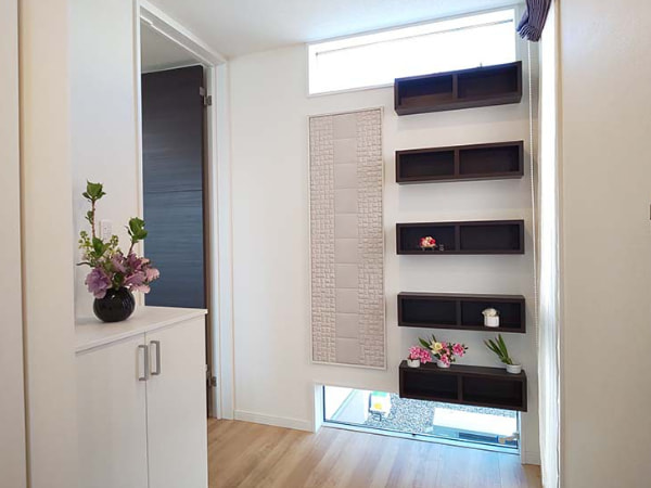 シンプルな窓・エコカラット・壁付けの飾り棚は、それ自体がインテリアのようでありながら、小物をさらに引き立たせてくれます。